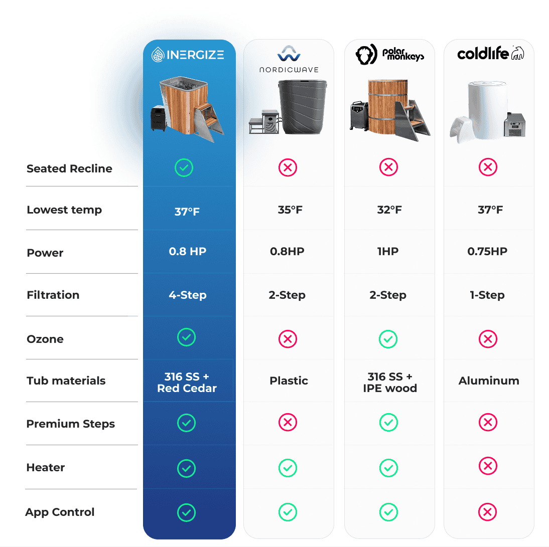 - Inergize Chiller: Cools water down or heats with local controls and app, continuous ozone and filtration.